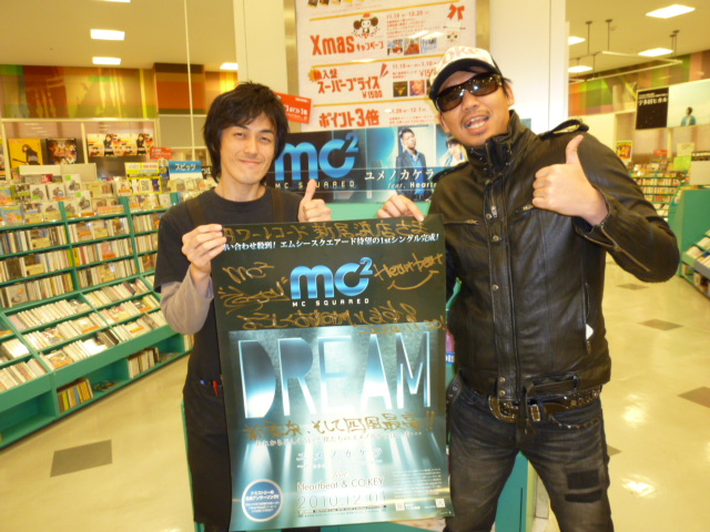 mc2feat.Heartbeatインストアイベント名古屋編! 今回のイベントでお世話になったタワーレコード千種店さんにご挨拶。 リリースから2週間以上経つのにこの展開! Heartbeatの地元名古屋は熱いっす! 名古屋の皆さん、タワーレコード千種店さん本当にありがとうございました! |