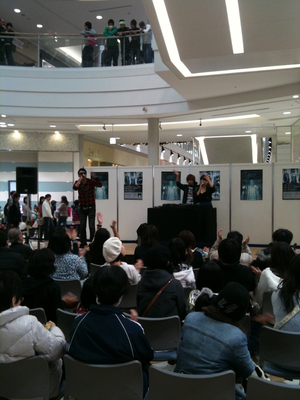 mc2LIVE! 原宿KDDIデザイニングスタジオにてmc2with HeartbeatのLIVE! いらして頂いた方、ありがとうございます! たまたま通りがかって観てくれた人も多いことでしょう LIVEの模様は街頭ビジョンで生放送されてました。 そうです←の写真の様な感じですね 終了後にサイン会も開催しましたよ インストアイベント、クラブサーキットとまだまだmc2with Heartbeat続きます 是非LIVEをチェックして下さい! |
